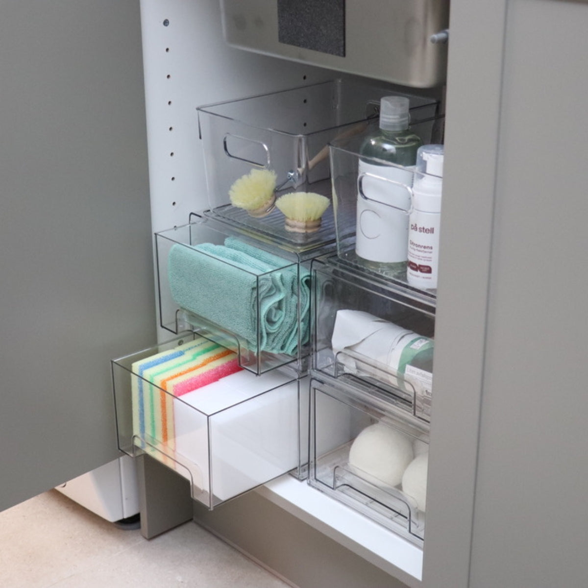 Denne boksen er perfekt for oppbevaring av mat, hobby, rengjøringsutstyr og mye mer. Innholdet blir synlig og lett å finne, noe som gjør organiseringen enkel. Denne universalboksen kan benyttes mange steder, og er derfor helt perfekt for å holde hjemmet ditt organisert. Den fungerer like fint i kjøleskapet, som under stellebordet.