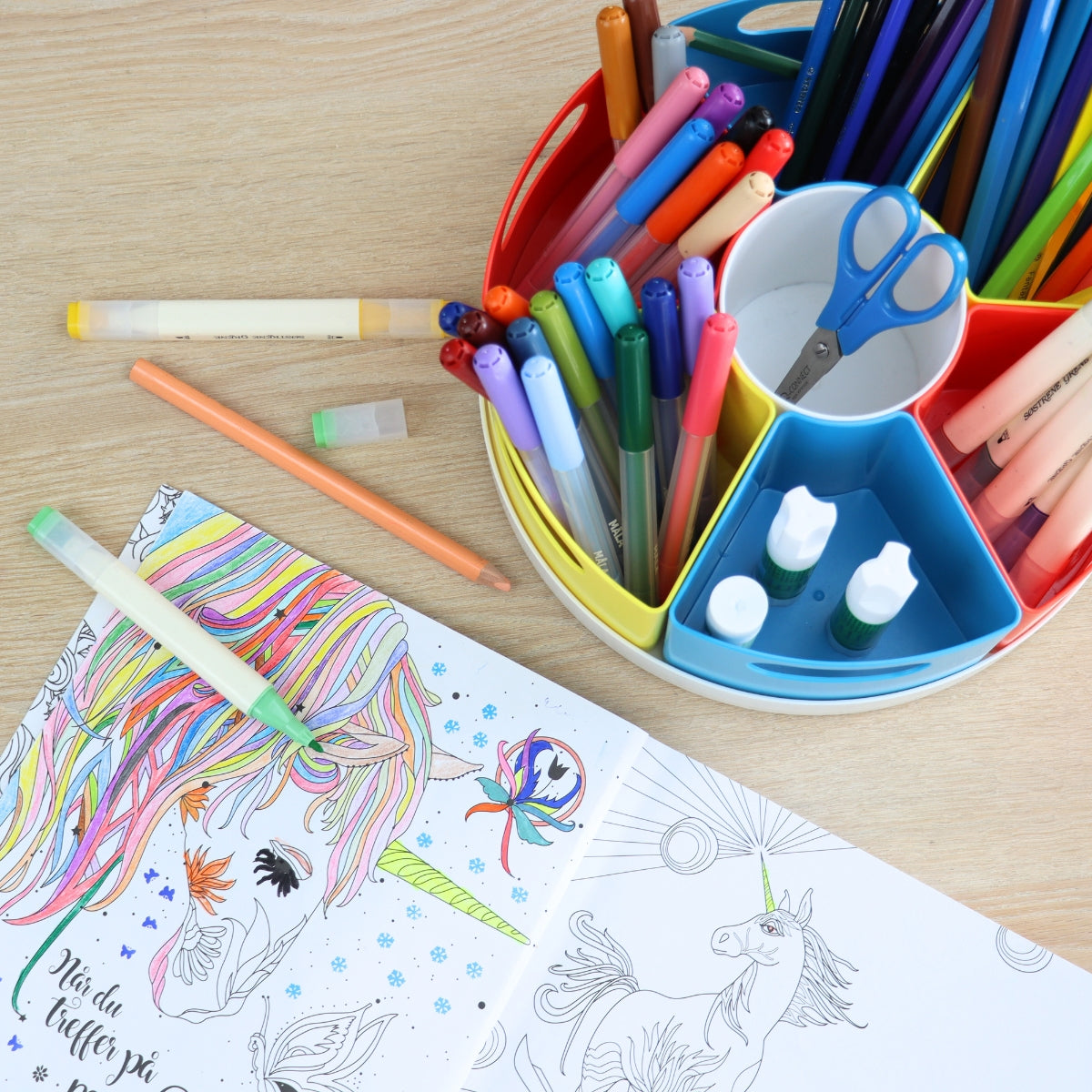 Få orden på småting med vårt fargerike snurrebrett med 6 uttakbare bokser. Hver boks har eget håndtak, noe som gjør det enkelt å ta ut og bruke innholdet. Perfekt for å organisere fargestifter, tusjer, limstifter, sakser og annet hobbyutstyr.